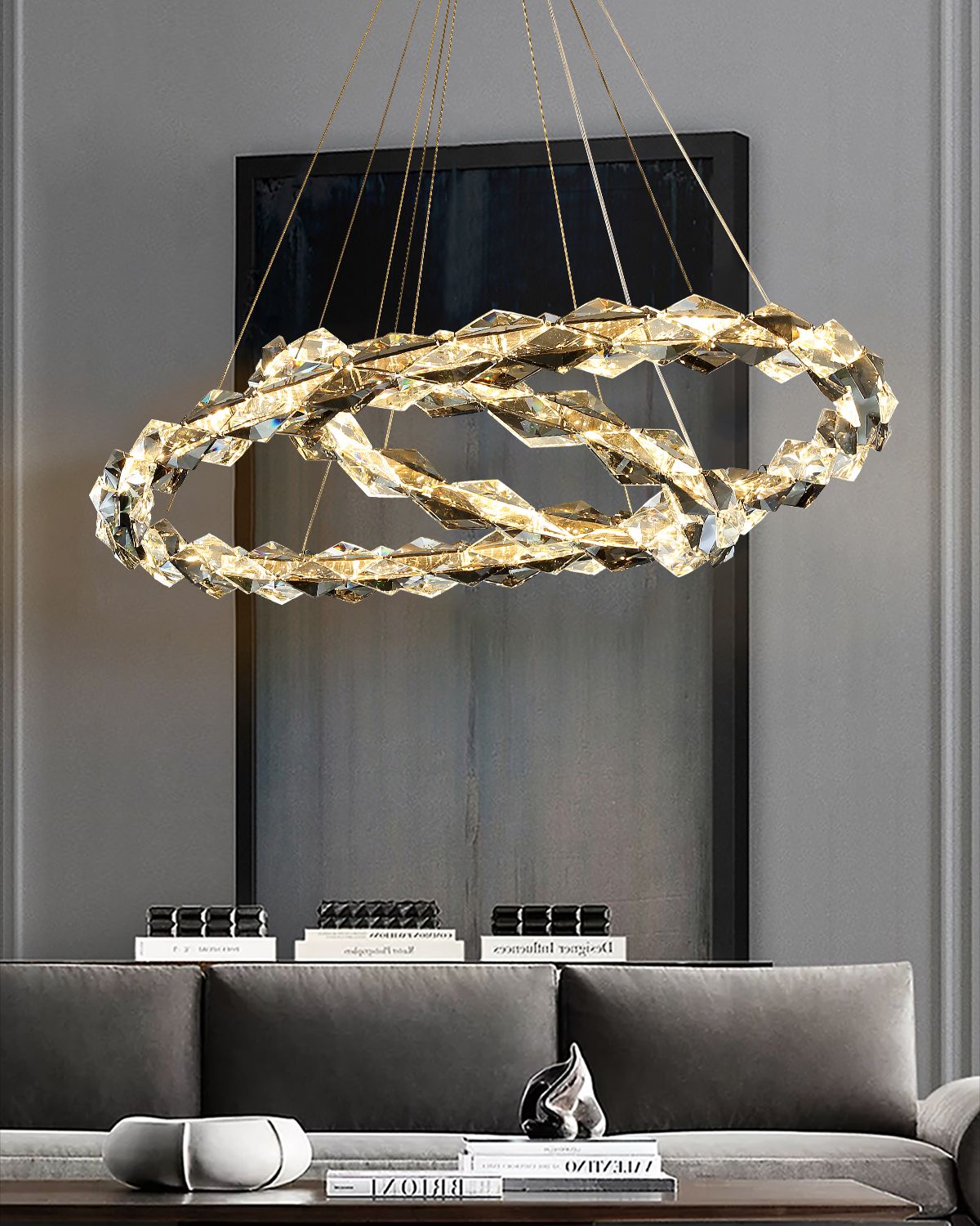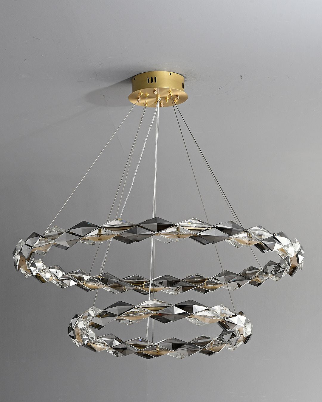 This crystal light is a perfect combination of modern minimalist design and luxurious materials. It is crafted from brass and crystal, making it an ideal accessory for bedrooms, living rooms and hotels. Enjoy a warm and inviting illumination with this light fixture that will highlight the unique elements of any space.